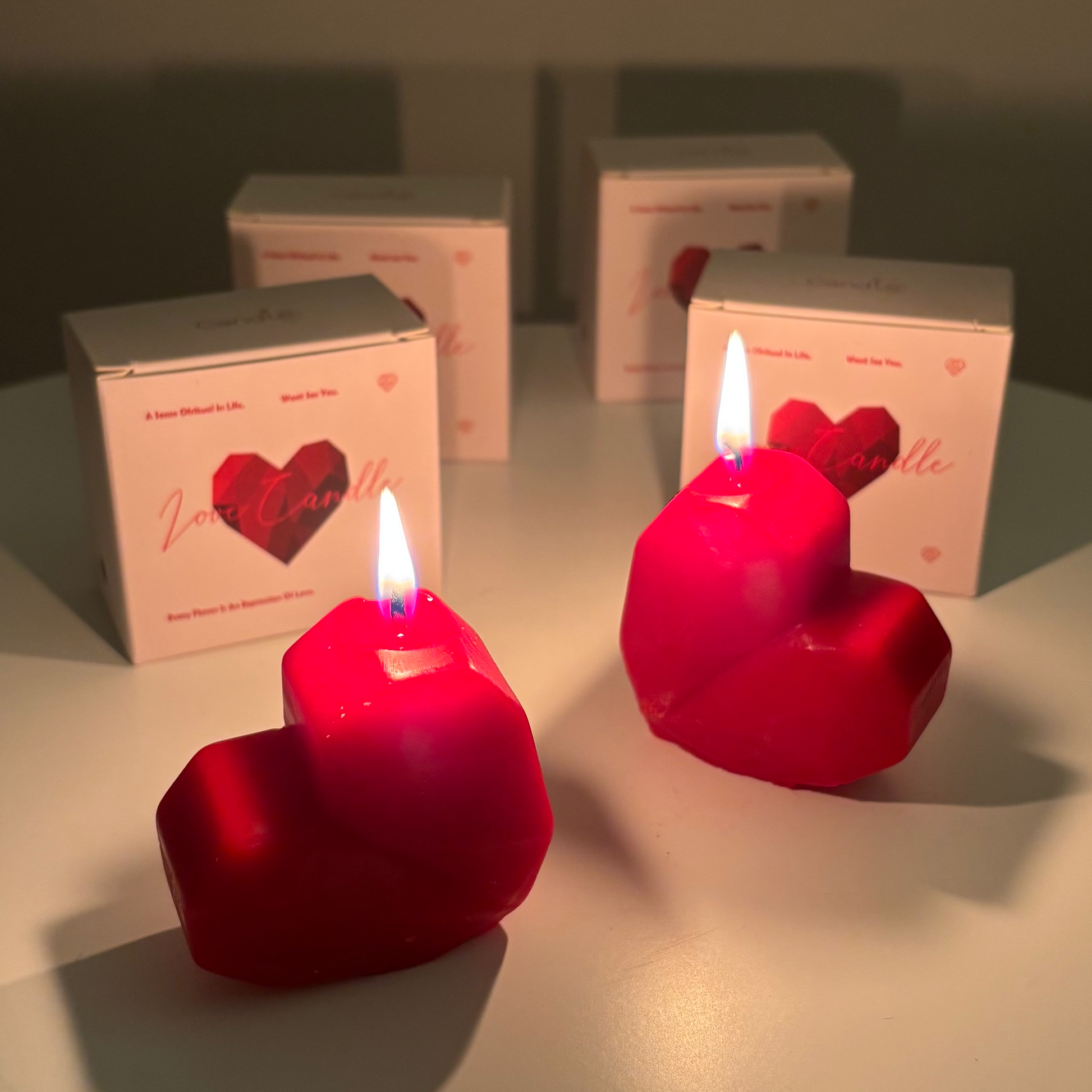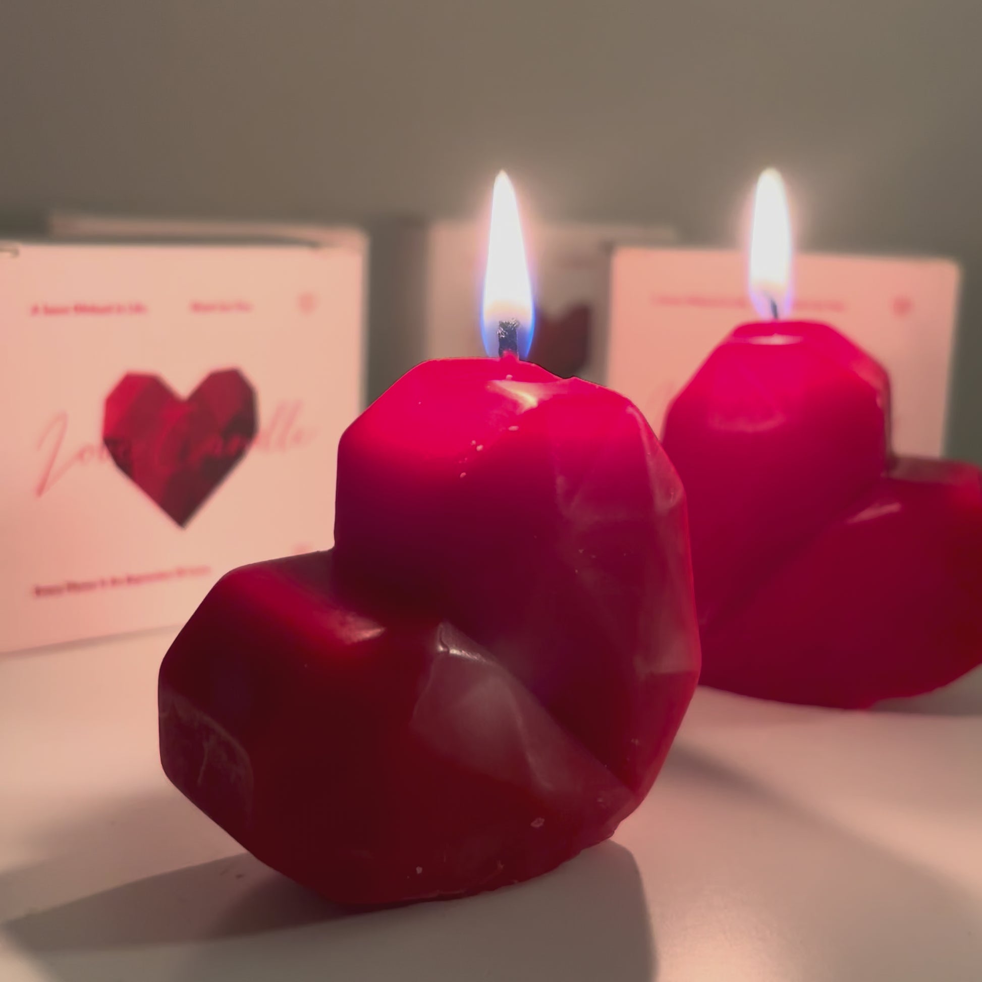 En version deux bougies, les cœurs s’emboîtent visuellement pour former l’aspect d’un grand cœur, créant un rendu encore plus symbolique et harmonieux.
