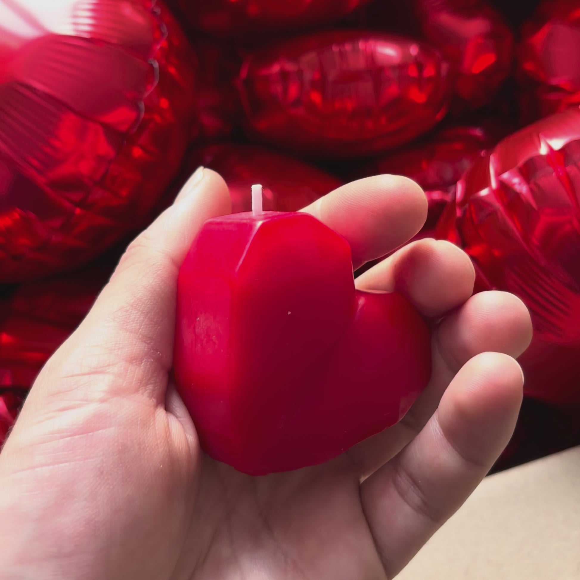 Sa couleur rouge et sa forme en cœur apportent immédiatement une touche de romantisme, tandis que son parfum délicat de rose diffuse une ambiance douce et agréable 🌹