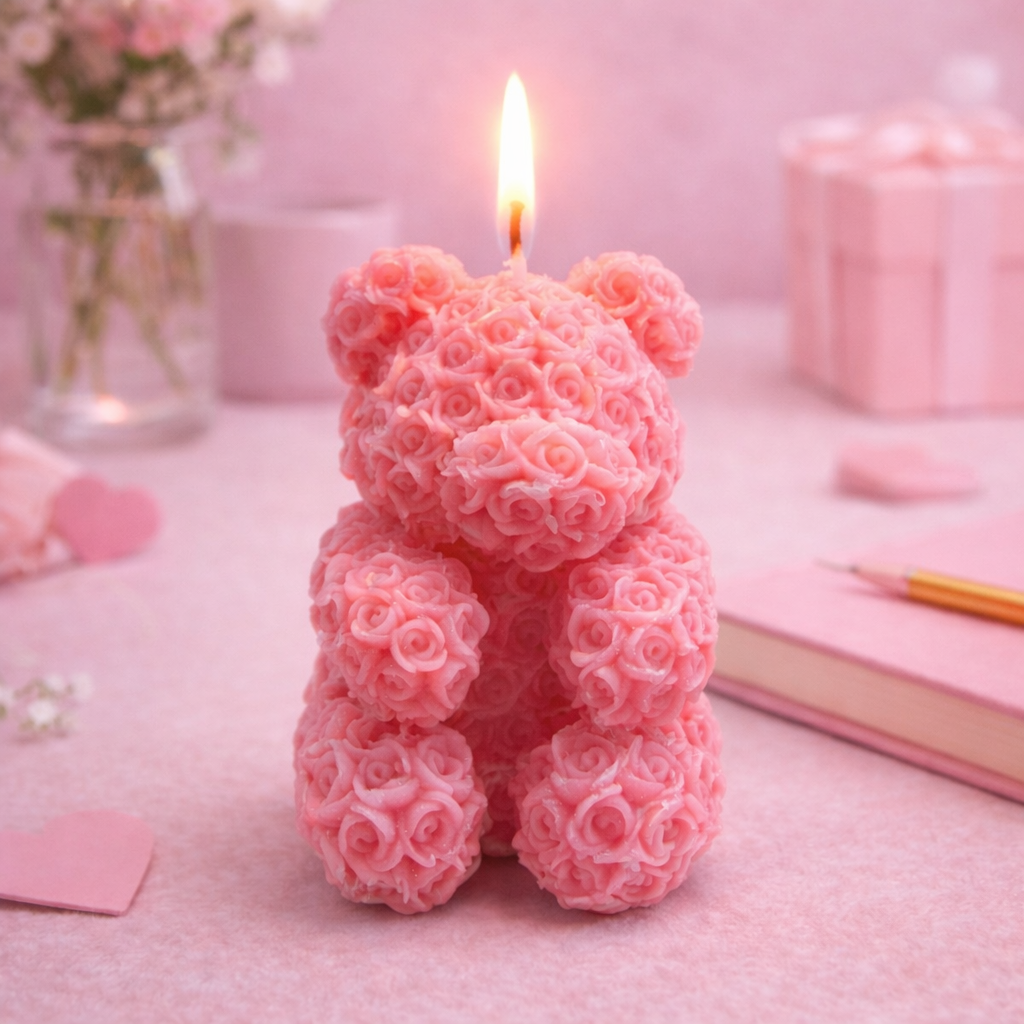 Cette bougie en forme d’ours rose est une attention pleine de douceur et de tendresse 🧸