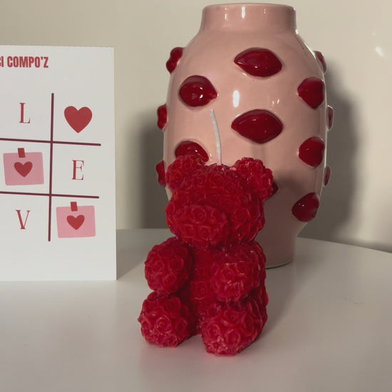 Bougie ours rouge parfumée à la rose